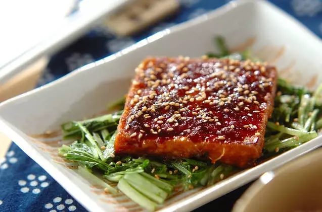 厚揚げを香ばしく焼いて、照り焼き味に!お肉がなくても食べ応えがあるメインおかずが作れます。厚揚げは厚みを半分に切り小麦粉をまぶします。タレが絡みやすくなり食べ応えもアップします。