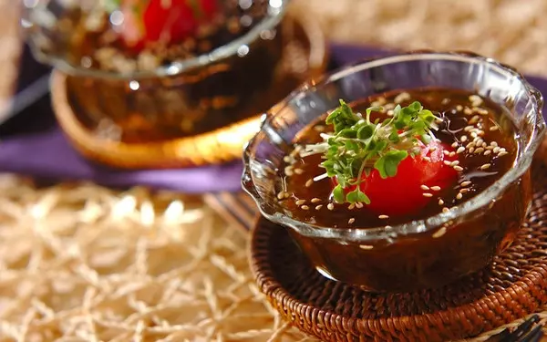 味つけもずくを使うと、ドレッシングなしでトマトサラダが作れます。5分で作れる手軽さが魅力で、盛りつけにこだわればおもてなしにも最適です。しっかり冷やすとより美味に。松茸ご飯を炊いている間に準備しておくと良いですよ。