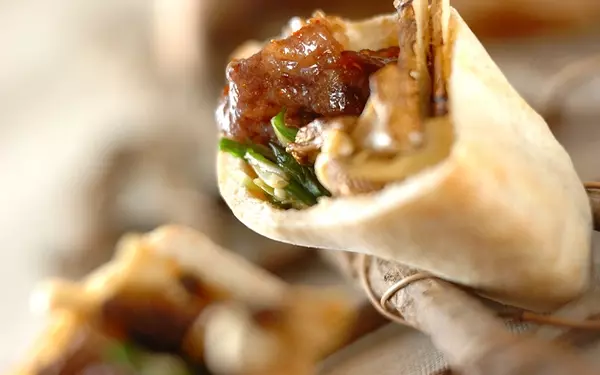 松茸は和食のイメージが強い食材ですが、ピタサンドにするのも◎。網焼きした香ばしい松茸と、甘辛く味つけした牛肉を詰めるリッチな一品です。松茸の香りがふわりと広がり、五感で楽しめるのが魅力。ピタパンを焼くのが難しい方は、市販品でもOKですよ。
