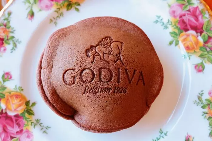 大きさに感動!そして生地に刻印された、GODIVAのロゴに「おぉー!」と声が出ました!上から見ても、膨らみが感じられますよね!薄皮ながらモチモチ感のある生地には長芋が入っているんですね!モチモチと歯切れが良いのも頷けます。しっとり感の秘密は水飴でしょうか。「どらもっち」奥が深いです。