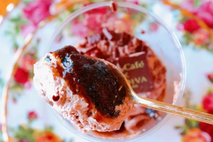 カップスイーツって、見た目のわくわく感も楽しみの一つですよね。期待を裏切らない豪華さです!フロマージュショコラムース、コーヒージュレ、チョコレートクリームの3層になっています。