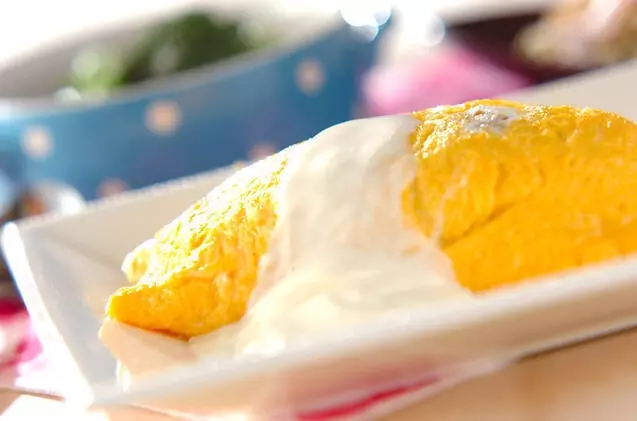 デミグラスソースのご飯を卵で包んだ変わり種オムライス。レシピの<調味料>をビーフシチューに置き換えて、さっぱり味のサワークリームソースをかけておしゃれに仕上げます。濃厚で甘味のあるごはんと酸味が効いたサワークリームソースが絶品です。