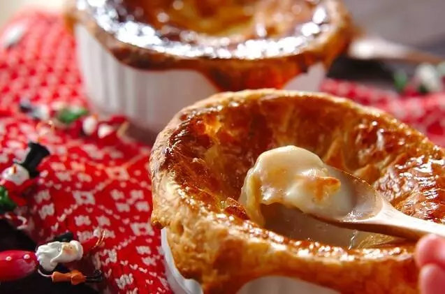 耐熱のココット皿にシチューを入れて、冷凍パイ生地をかぶせて焼けばカフェ風のシチューポットパイが完成します。オーブンに入れますので器は必ず耐熱のものを使ってください。