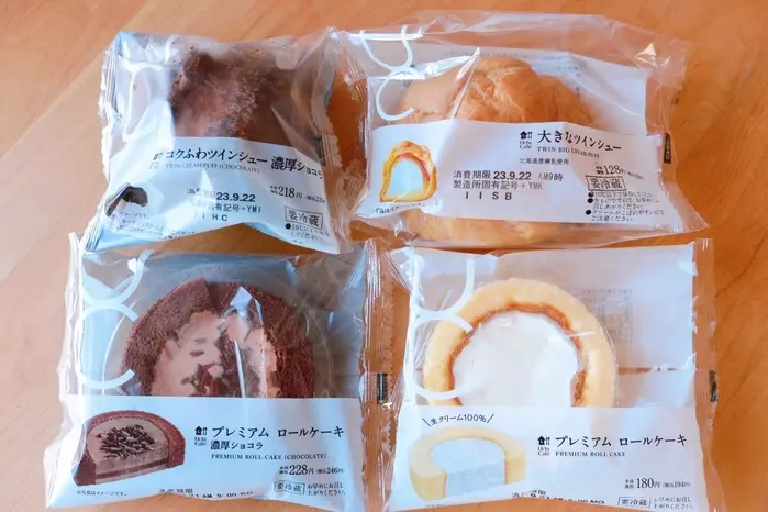 この記事では、新発売商品「プレミアムロールケーキ 濃厚ショコラ」「コクふわツインシュー 濃厚ショコラ」と、既にお馴染みの「プレミアムロールケーキ」「大きなツインシュー」の4種類を実食したレポートをお届けします!