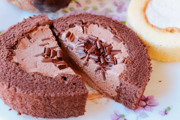 今回の新作は、2018年発売「プレミアムチョコロールケーキ」より、1食当たりのカカオ分が1.5倍以上含有されているので、より濃厚な味わいになっているそうです!わくわく♪