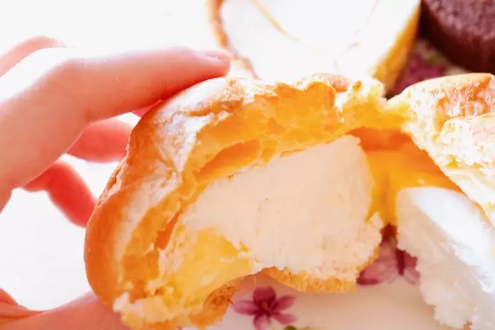 シュワっとした食感のクリームが好きです。ふんわり、滑らかさもあって…。甘ったるさがないのも魅力です。生地の甘みをしっかり感じられるのもポイントかなと思います。生地とクリームのバランスが素晴らしいと思います!