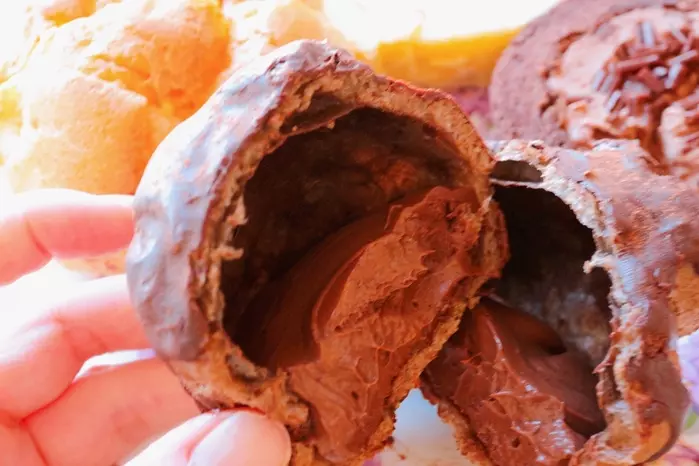 上の方はビターなチョコレートが思ったりよりしっかりシューをコーティングしているので、クリームが無くてちょうど良く、下の方はコーティングがないので、中のチョコクリームの濃厚さをしっかり味わえました。とっても濃い!「チョコクリーム少ないんじゃない?!」と思った私、謝れ…!笑