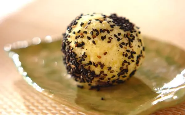 中華の定番デザート、ゴマ団子を秋らしくサツマイモでアレンジ。サツマイモをレンジでチンしたら潰して丸めて、中に茹で小豆を包むのがポイントです。ホクホク食感が後を引きます。温かい日本茶と一緒にいただきたいですね。