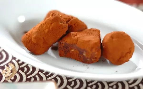 サツマイモがヘルシーなトリュフに大変身! レンチンしたサツマイモをマッシュしたらチョコレートを混ぜ合わせ、コロンと丸めて冷蔵庫で冷やします。仕上げにココアパウダーをまぶしたら完成です。少ない材料で作れて試してみる価値アリ。