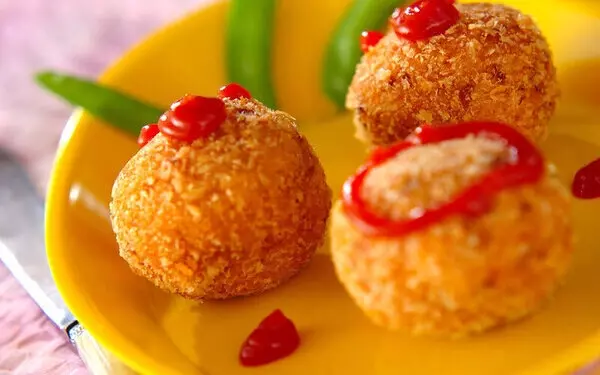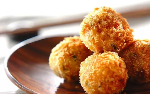 主食代わりにもなるライスコロッケは、おもてなし料理にぴったり。粉チーズ入りのケチャップライスを丸めたら、キツネ色になるまで揚げます。ケチャップライス自体は火が通っているので揚げ時間は短くて良いですよ。冷めても味が落ちず、持ち寄りパーティーやお弁当にも喜ばれます。