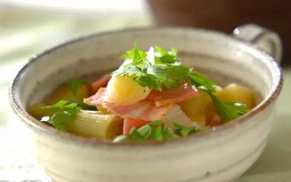 トロッと煮込んだネギが最高に美味しいです。ベーコンの旨味もアクセントに。ジャガイモが入ることでボリュームUPし、これだけでおなかを満たせそうです。