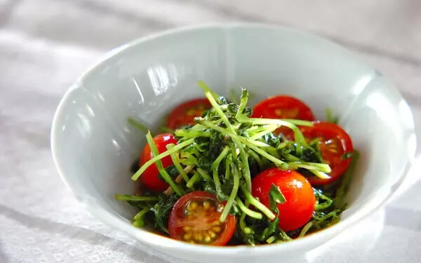 茹でてより緑色が鮮やかになった豆苗とトマトが目を引く和え物はいかがでしょうか? オイスターソースやゴマ油などで中華風に味付けするため、おつまみにぴったりです。味がぼやけないよう、豆苗の水気をしっかり切ってから和えましょう。