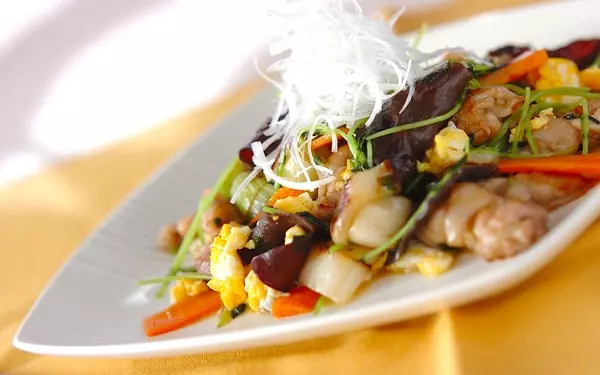 豚肉やキクラゲ、豆苗など具だくさんの炒め物はがっつり食べたい日の主菜におすすめです。豆苗は豚肉を炒めたタイミングで加えましょう。食感よく仕上がります。少しとろみをつけるので、丼にしても美味しいですよ。