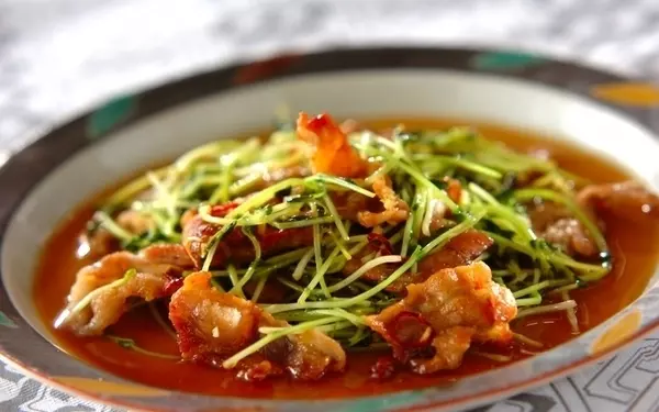 赤唐辛子を効かせたピリ辛炒めです。豚バラ肉はやや大きめに切って存在感を活かしましょう。炒め油を使わずに豚バラ肉から出た脂で豆苗を炒めるのがポイント。豆苗がしんなりしたら手早く味付けしてアツアツを召し上がれ。