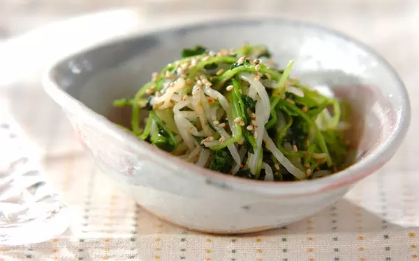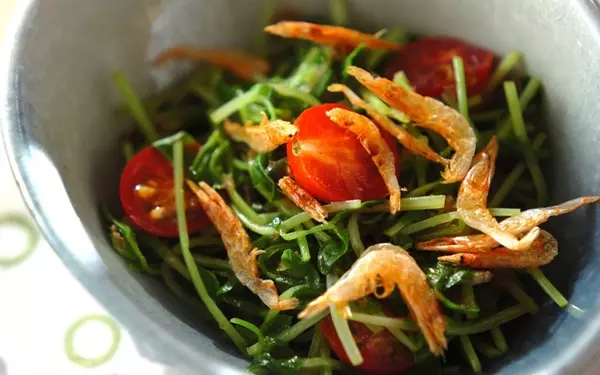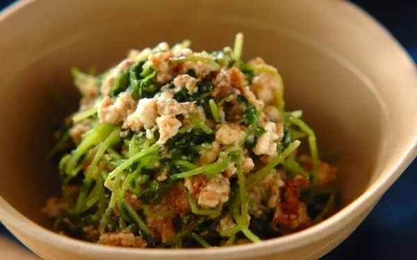 かつお節と干し桜エビの風味を活かした和え物は、箸休めに喜ばれます。相性の良いゴマ油やしょうゆで作ったタレが全体に行き渡り、美味しさアップ。豆苗をモリモリ食べたい方にぴったりですよ。