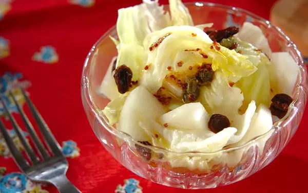 梨やレタスに、甘みの強いレーズンを合わせるユニークなサラダ。10分で作れるので、忙しいときにも重宝しますよ。味付けはリンゴ酢や粒マスタードなどで洋風に。ドレッシングを先に作っておき、食べる直前にかけましょう。