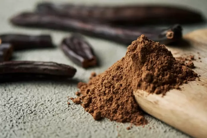 「キャロブパウダー」は、マメ科の植物 (イナゴマメ)のさやを乾燥させ粉末状にしたもので、カカオの代替品として使用される、健康に良い食品の一つ。ココアのような風味とほんのり感じる甘みが特徴です。