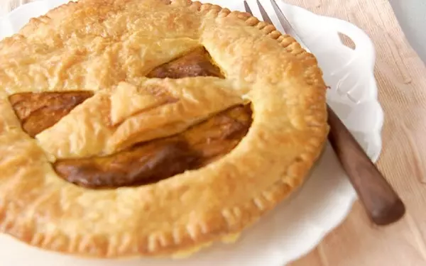 冷凍パイシートでOK。ハロウィンの定番スイーツ、パンプキンパイをジャック・オ・ランタン風に。サクサクの生地にカボチャの風味が口いっぱいに広がります。ブランデーやシナモンを使って風味豊かに仕上げましょう。目や口を切り抜いて焼き上げるのがポイントです。