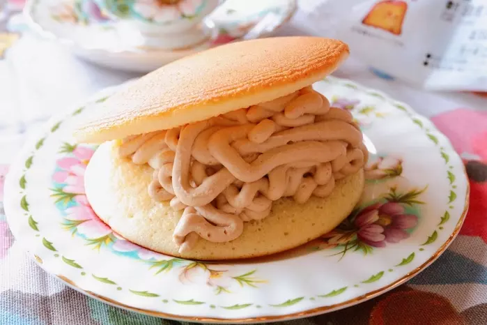 コンビニスイーツでよく見かけたモンブランのどら焼きは袋に入っていたのですが、こちらは箱型です!モンブランのクリームがこれでもか!とたっぷり盛り付けられていて、クリームがつぶれないように収められています。ローソンさんの本気度がパッケージにも表れていますね…!?