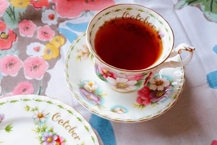 前回のスイーツ紹介記事で、イギリスの名窯「ロイヤルアルバート」の「フラワー・オブ・ザ・マンス」の食器を一部紹介しました。今回は、その続きで10月の食器を紹介します。描かれているのはコスモス。秋を代表する花としても人気ですね。とても愛らしい、優しいピンク色が印象的です。スイーツのお供は、静岡県産の和紅茶にしました。日本産の茶葉で作られたもので、あまり渋みはなくまろやかな味わいです。品種は様々ですし、茶園によっても味わいは変わりますが、和紅茶はストレートでも渋みがあまりないため飲みやすいように思います。