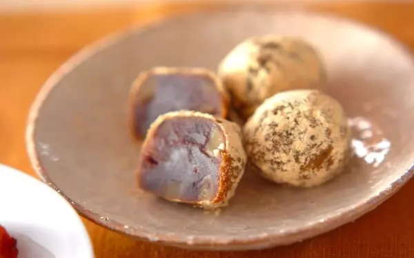 刻んだ渋皮煮と練りこしあんを混ぜて、ひと口サイズの和菓子に。仕上げにきな粉をたっぷりまぶしましょう。火を使わず、手軽に作れるのがポイント。ほっくりとした甘さがたまりません。温かい緑茶と一緒にいただきたいですね。