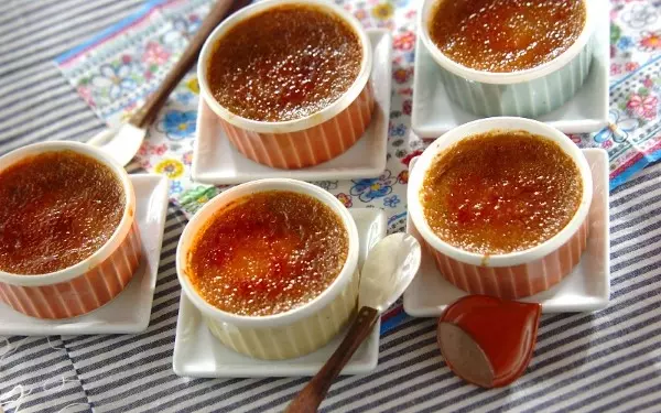 カラメルをパリッと割ると、なめらかなブリュレ生地の中に刻んだ渋皮煮が入っています。栗本来の味わいがしっかりと感じられる一品です。食感の変化を楽しめるのもうれしいですね。お好みでデコレーションしても◎。