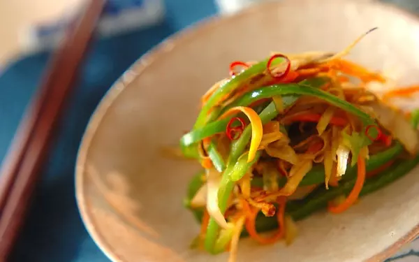しょうゆで味付けすることが多いきんぴらをみそでアレンジしましょう。ゴボウ、ニンジン、ピーマンと色や食感の異なる野菜を組み合わせるのがポイント。砂糖を加えないので、すっきりとした味わいを楽しめます。野菜はシャキッと食感が残るように炒めてくださいね。
