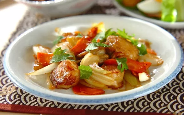 鶏むね肉にみそやしょうゆなどで作ったみそダレをからめる、ボリューミーな主菜です。鶏むね肉を1枚そのまま焼くため、旨みがギュッと凝縮されますよ。炒め野菜と一緒に盛り付けるので、肉と野菜をバランス良く食べたい日にもってこいです。