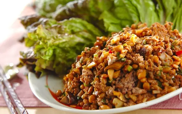 風味の強い赤みそと納豆で、栄養満点の一品を作ってみませんか? 合いびき肉や水煮タケノコなどを炒めたら、赤みそやウスターソースなどで炒め煮に。ひき肉の旨みと調味の風味、納豆の香りなどが合わさって驚くほどの美味しさです。ごはんにのせたり、サニーレタスに包んだりといろいろな食べ方を楽しめますよ。
