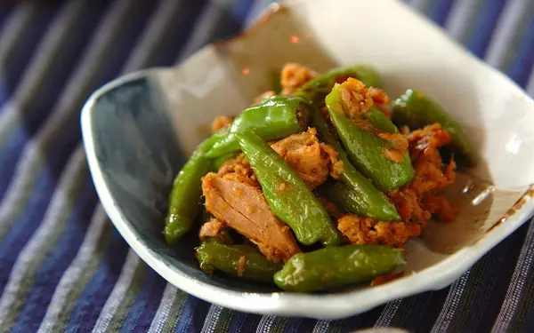 ニンニクと豆板醤でパンチを効かせた厚揚げを、みそや砂糖で味付けします。厚揚げと豆板醤は韓国料理で使われることが多い組み合わせ。辛さと甘みのバランスが絶妙で、ついつい箸が進みます。サヤインゲンの歯応えとの違いも堪能しましょう。