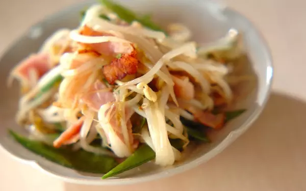 モヤシとベーコンの炒めものはいろいろな味付けがあるなかで、こちらはみそと砂糖を使う一品です。ベーコンの塩気があるため、みその量は加減しましょう。モヤシを炒めすぎると水分が出てしまうので、強火で短時間で仕上げてくださいね。