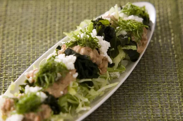 意外な組み合わせの納豆とアボカドですがこれが合うんです!刻みのりがポイントのこちらの一品はサラダ感覚で食べましょう。ヘルシーで食べ応えがあるサラダです。