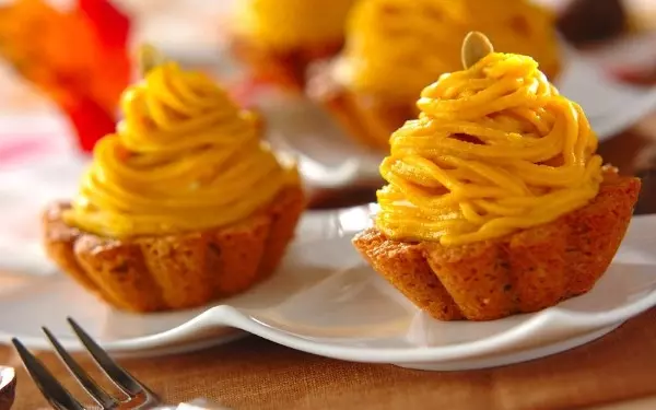 チョコスポンジに濃厚なカボチャクリームを絞ってモンブラン風に。ラム酒の効いたカボチャのグラッセを中に忍ばせれば、栗に引けを取らない美味しさです。土台は市販のタルトカップやマフィンで代用しても大丈夫。