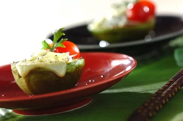 見た目もおしゃれな、アボカドのシラスチーズ。焼くだけの簡単メニューです。種が付いていた部分にシラス以外のお好みの具を入れても。ハーブソルトやチーズを使うので、ワインが欲しくなりそうです。