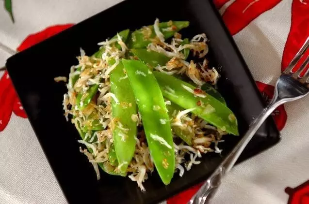 ■シャキシャキ♪ キヌサヤとシラスのペペロンチーノ