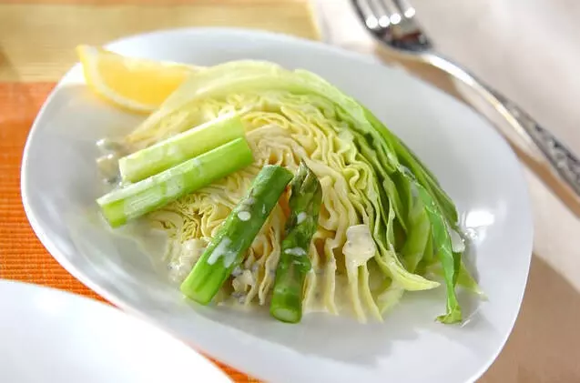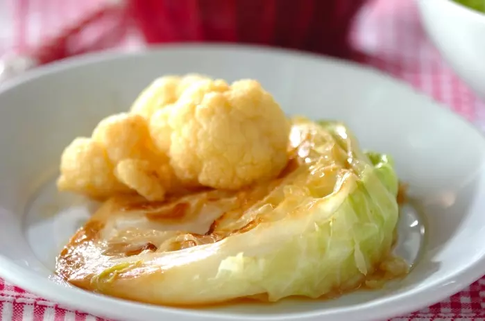 外側に焦げ目をつけたキャベツにレモン汁としょうゆ、かつおぶしをかけて食べます。シンプルだからこそキャベツの甘みが引き立ちます。