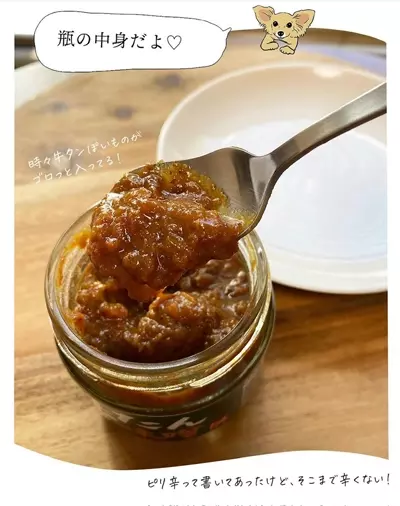 これはショウガや青唐辛子などの仕上げたピリ辛味噌に、牛たんを合わせた調味料とか。時々牛たんっぽいものがごろっと入っているそうで、牛たんといっしょに味わえばうまみがよりアップしそうです。