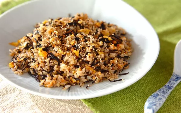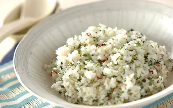 和食材の芽ヒジキをチャーハンの具材にする、ユニークなレシピです。芽ヒジキは水で戻してから炒めます。サケフレークや麺つゆで馴染みのある味付けにするため、小さな子どもも食べやすいですよ。せん切りの大葉を散らして彩りを添えるのも◎。