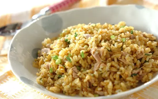 カレー味のチャーハンは、食が進まない子どもにも喜ばれます。炒める前に、ボウルでごはんと溶き卵、カレー粉を混ぜておくため、全体に味が行きわたるのがポイント。失敗なく作れるのがうれしいですね。ツナ缶のオイルが気になる方は、水煮缶で作っても良いですよ。