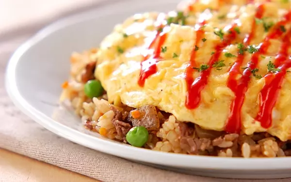 ウスターソースや顆粒スープの素などで作るチャーハンは、中華のイメージをガラッと変えてくれますよ。辛いのが苦手な子どもはチリソースの代わりにケチャップを入れても良いでしょう。チャーハンにふわりとのせた卵は半熟に。チャーハンと一緒に召し上がりください。