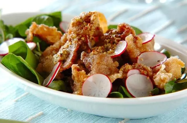 よく焼いた豚はカリッとした食感で噛むほどに旨味と甘みが溢れます。ホウレン草は生食用のサラダホウレンソウを使ってください。ない場合は、茹でホウレン草に豚肉を乗せて食べても良いでしょう。
