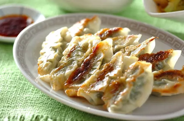 みじん切りにして塩もみしたホウレン草と豚ひき肉を合わせたアレンジ餃子。ホウレン草を一束使い切る栄養価の高いおかずです。黒酢ベースのつけだれでいつもの餃子と違う味わいをお楽しみください。