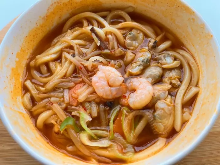 チキンスープのコクとオイスターと唐辛子で仕上げた辛さも本格的な旨味たっぷりのスープ。魚介の旨みたっぷりのクセになる辛口チャンポンです。韓国料理屋さんのあの味をコンビニでも!