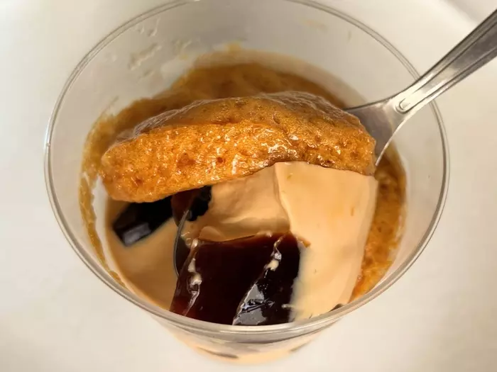 ふんわりしゅわ食感の紅茶カラメル風味の泡ゼリーと、濃く煮出した紅茶のゼリーが入ったミルクティーゼリーの層が楽しめるカップデザート。コーヒーが苦手な方も楽しめるダルゴナデザートです。