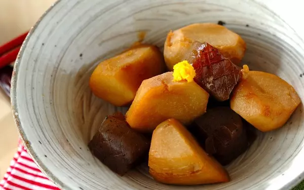 食感の異なる里芋とコンニャクで作った煮物は、こっくりとした濃いめの味付けが魅力です。それぞれを下茹でしてから煮るのがコツ。ぬめりを取ってから煮ると、煮汁が吹きこぼれにくくなるメリットもあります。煮汁が少なくなるまでじっくり火を通すことで、中まで味がしみ込んだ煮物に仕上がりますよ。