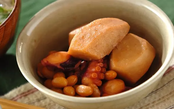 里芋は魚介類とも相性が良い野菜です。茹でダコを使えば下処理の手間要らずで便利ですよ。里芋の下茹ではレンジで簡単に。タコの旨みが強いので、調味料はシンプルにするのがおすすめです。水煮大豆のホクッとした食感も里芋によく合います。