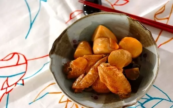 里芋と手羽先の煮物は甘辛い味付けで、ごはんが進みます。手羽先を焼いた鍋で里芋を煮るので、旨みがギュッと凝縮された一品に。手羽先から出たアクを丁寧に取り除くと上品な味わいになりますよ。鍋ごと冷まして味がなじめば、さらに美味しさがアップ。