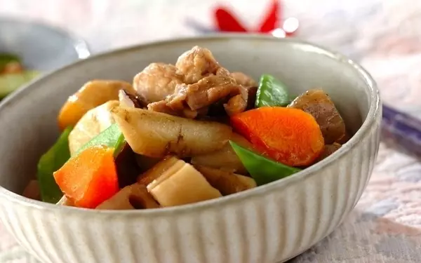 食べ応えのある豚バラ肉を使った里芋の煮物は、ボリュームがあり主菜にもってこい。豚バラ肉をショウガと一緒に炒めることで、独特の臭みが消えて食べやすくなりますよ。里芋は下茹でしてから煮て、短時間で味を含ませましょう。辛いものが好きな方は、調味料に豆板醤を加えても良いですよ。