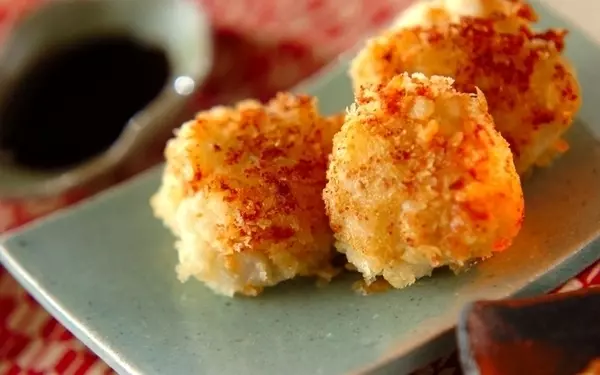 クリームチーズや生クリームが入れるリッチな味わいのコロッケです。里芋だけでなくジャガイモも使うので、ねっとりホクホクに。むきエビのプリッと食感もアクセントに。里芋とジャガイモはレンジで加熱するので、茹でるよりも手軽なのがうれしいですね。