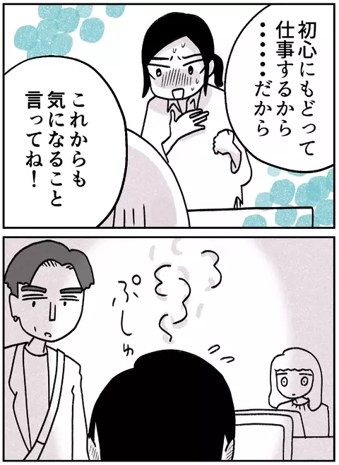 自分の非を認め、後輩に「気になること言って」と伝えた主人公。その勇気のある行動に社長と後輩の反応は?